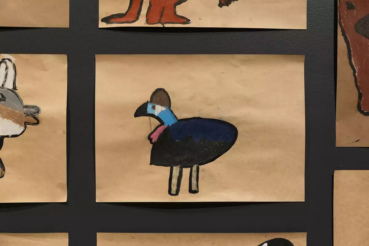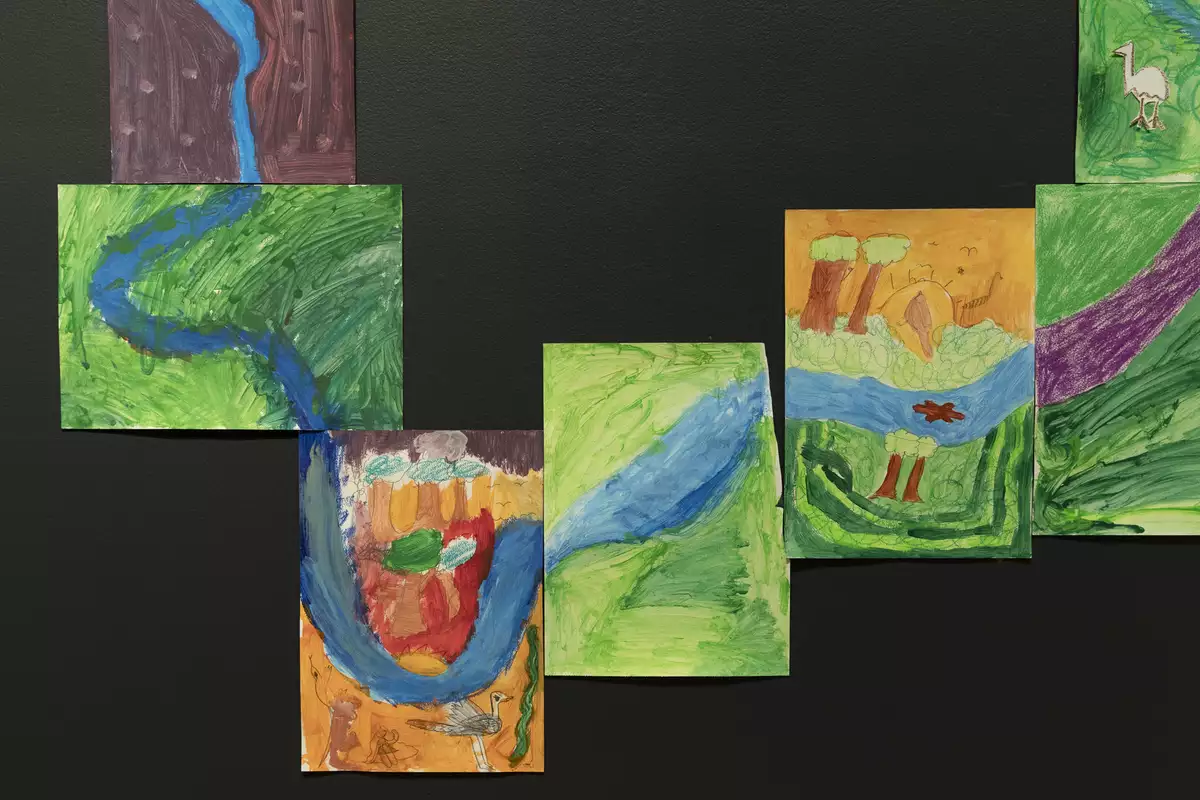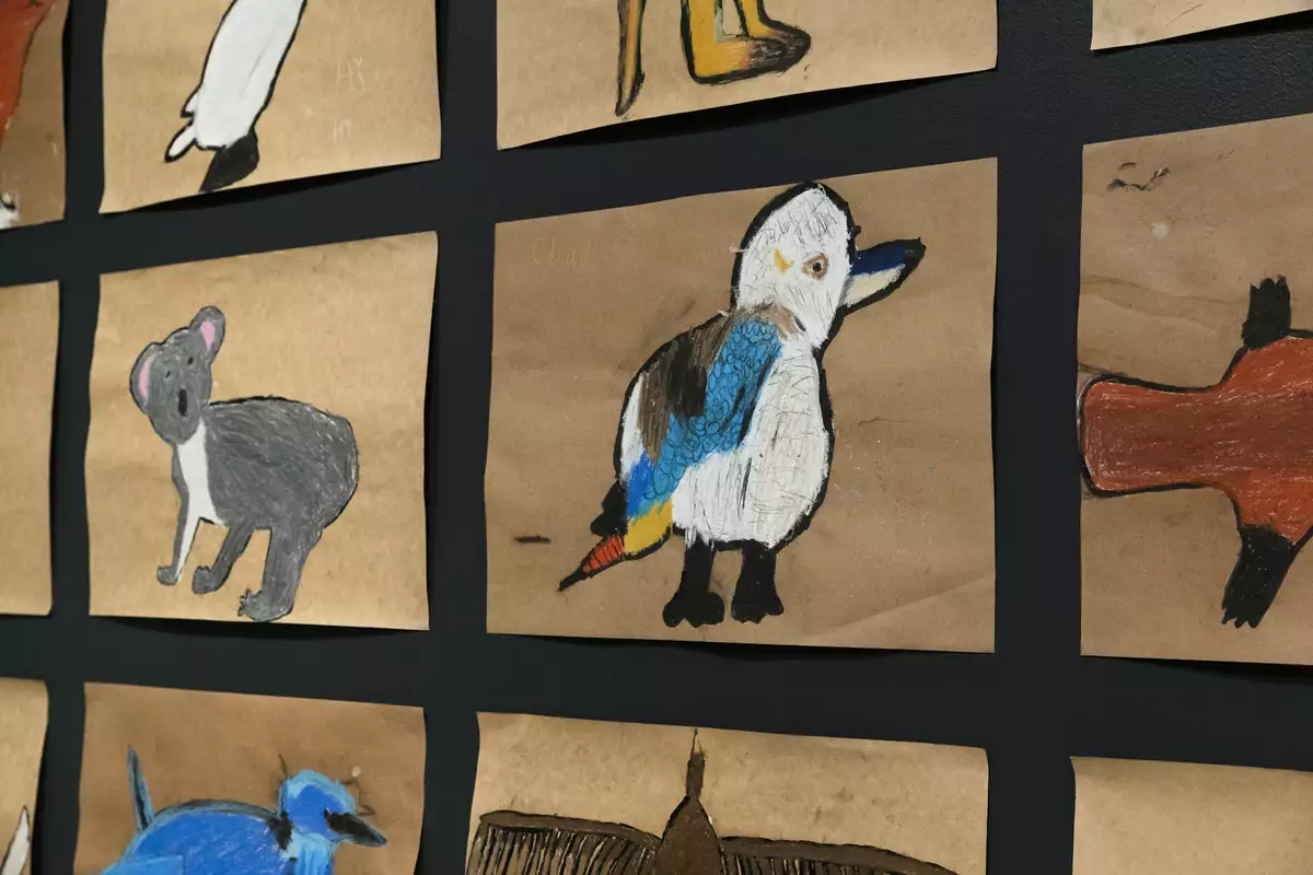Students learned about Country, Wiradyuri Lore, and art made by contemporary Wiradyuri artists. Each student chose a native totem animal that they best align with, and explored what they can do individually to protect our rivers and environment to protect these animals. Students' learnings are shared in their body of work on display in the 2025 Our Ngurang (Home) Program Exhibition.
